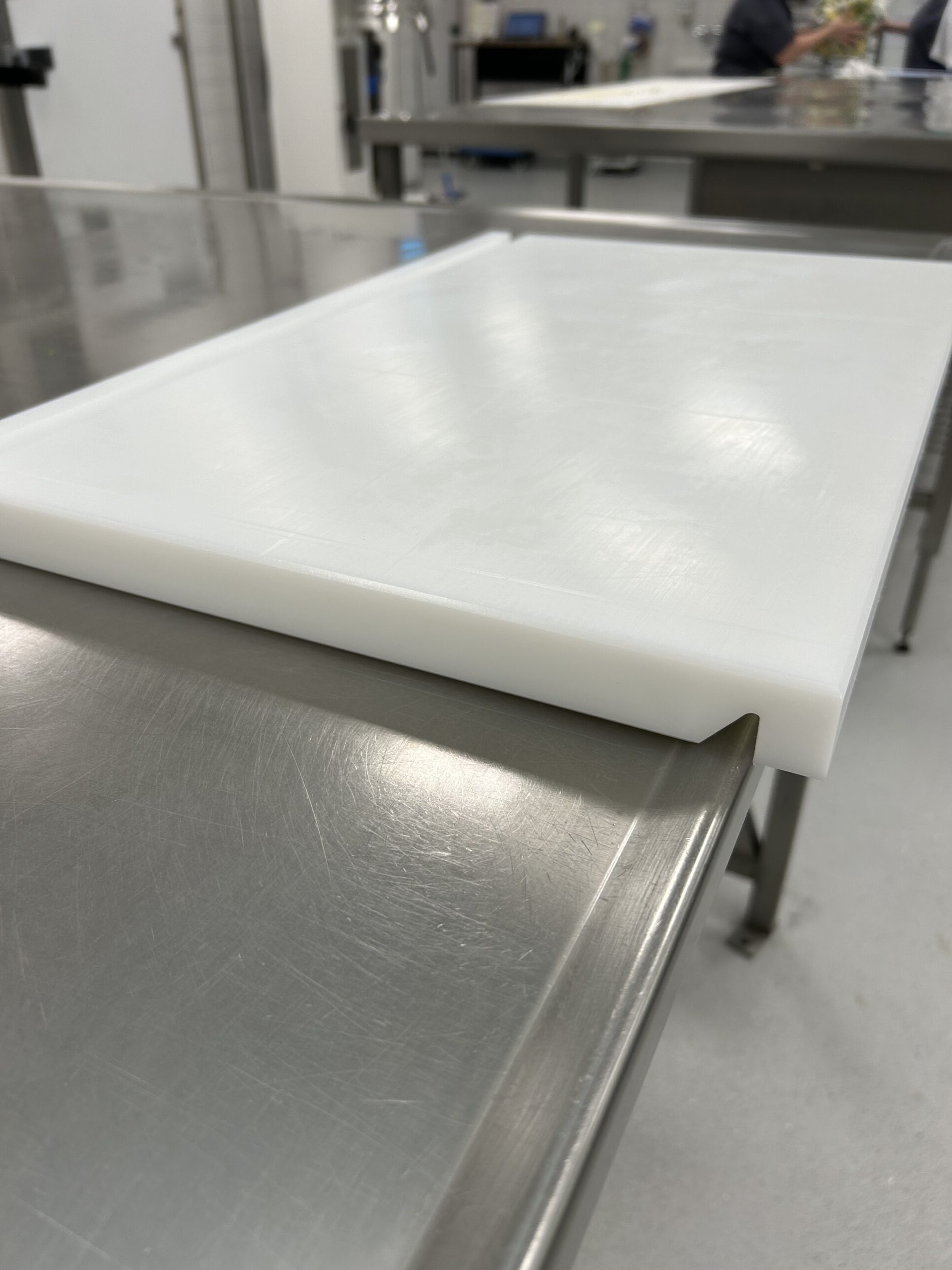 Skæreplanker eller skærebræts laves i pe500, og kan bruges til hele fødevareindustrien. Vi kan samtidig afhøvle skæreplanken efterfølgende således at skidt og bakterier høvles af, og skærebrættet er igen helt som n